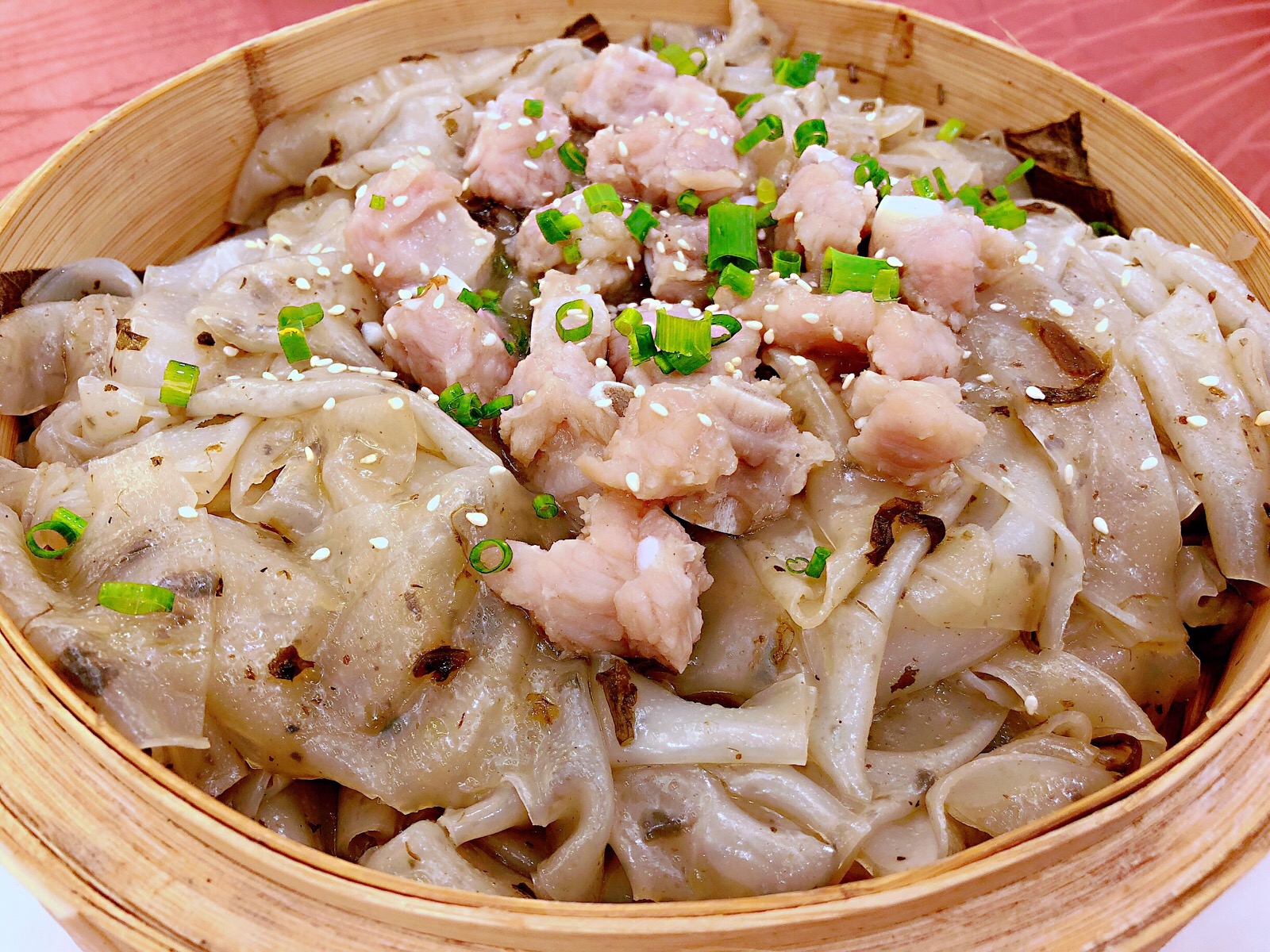 紧接着,鲜嫩多汁的瘦肉带来了丰富的口感层次。经过精心腌制的瘦肉,在蒸制过程中牢牢锁住了肉汁,每一口都饱含着浓郁的肉香与调料的醇厚风味。瘦肉的鲜嫩与陈村粉的爽滑相互映衬,形成了一种美妙的口感对比。瘦肉的细腻质感与陈村粉的柔软质地相互交融,共同演绎出一场味觉与触觉的双重盛宴。